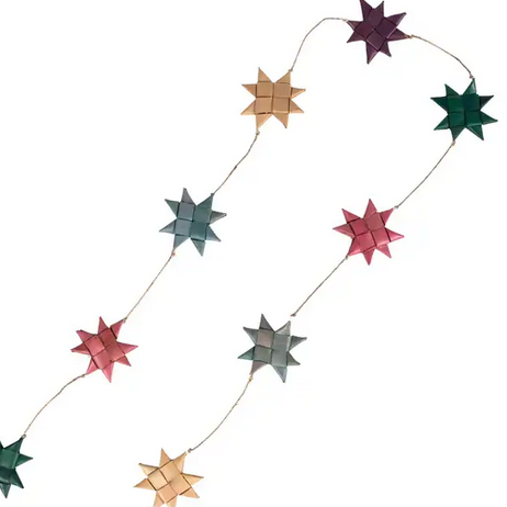 Add a pop of color to any tree, window, or table! This garland is handmade from palm leaves.